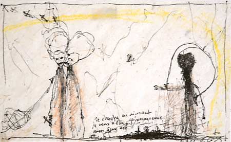 Personnage de lumière couché 2002, technique mixte 11x16cm